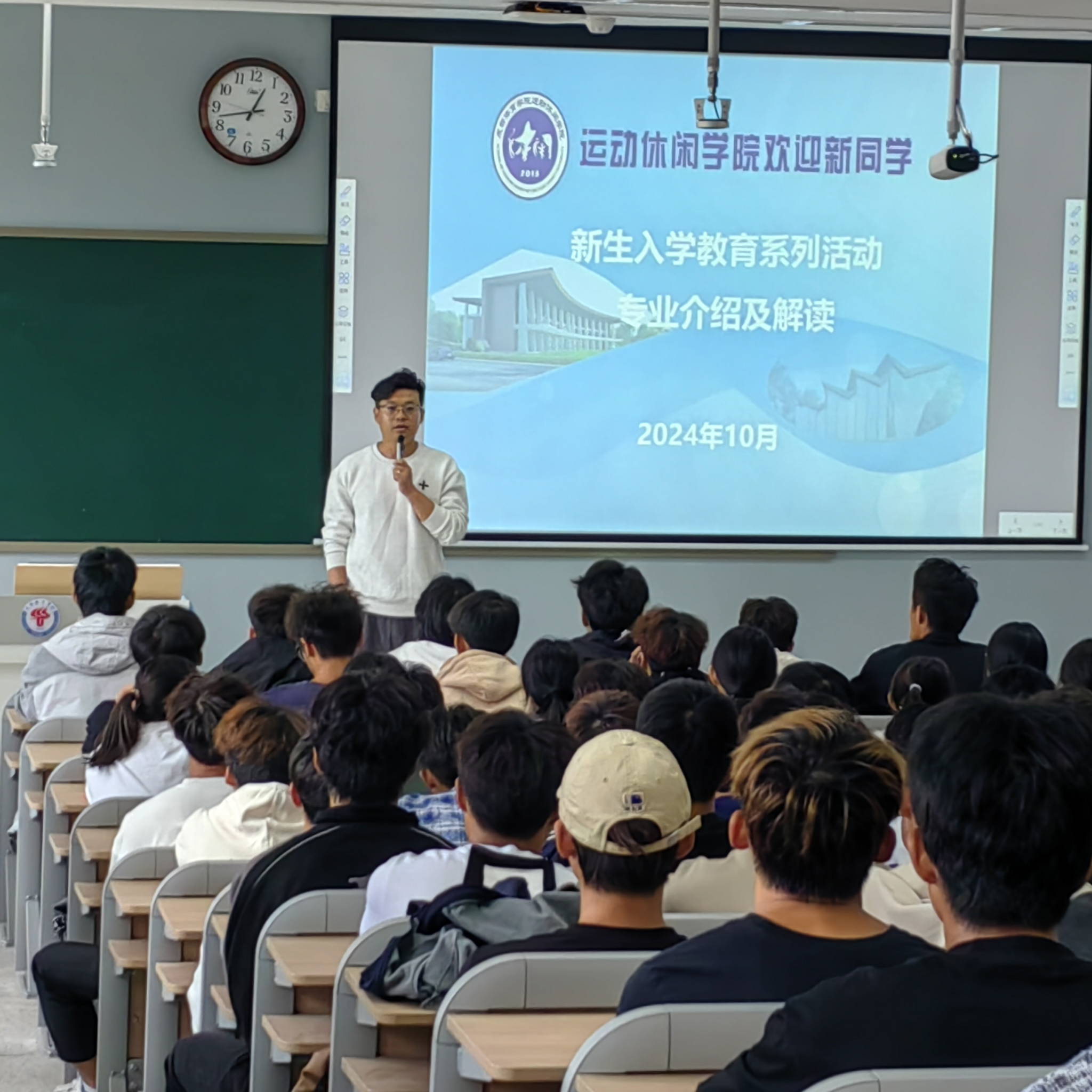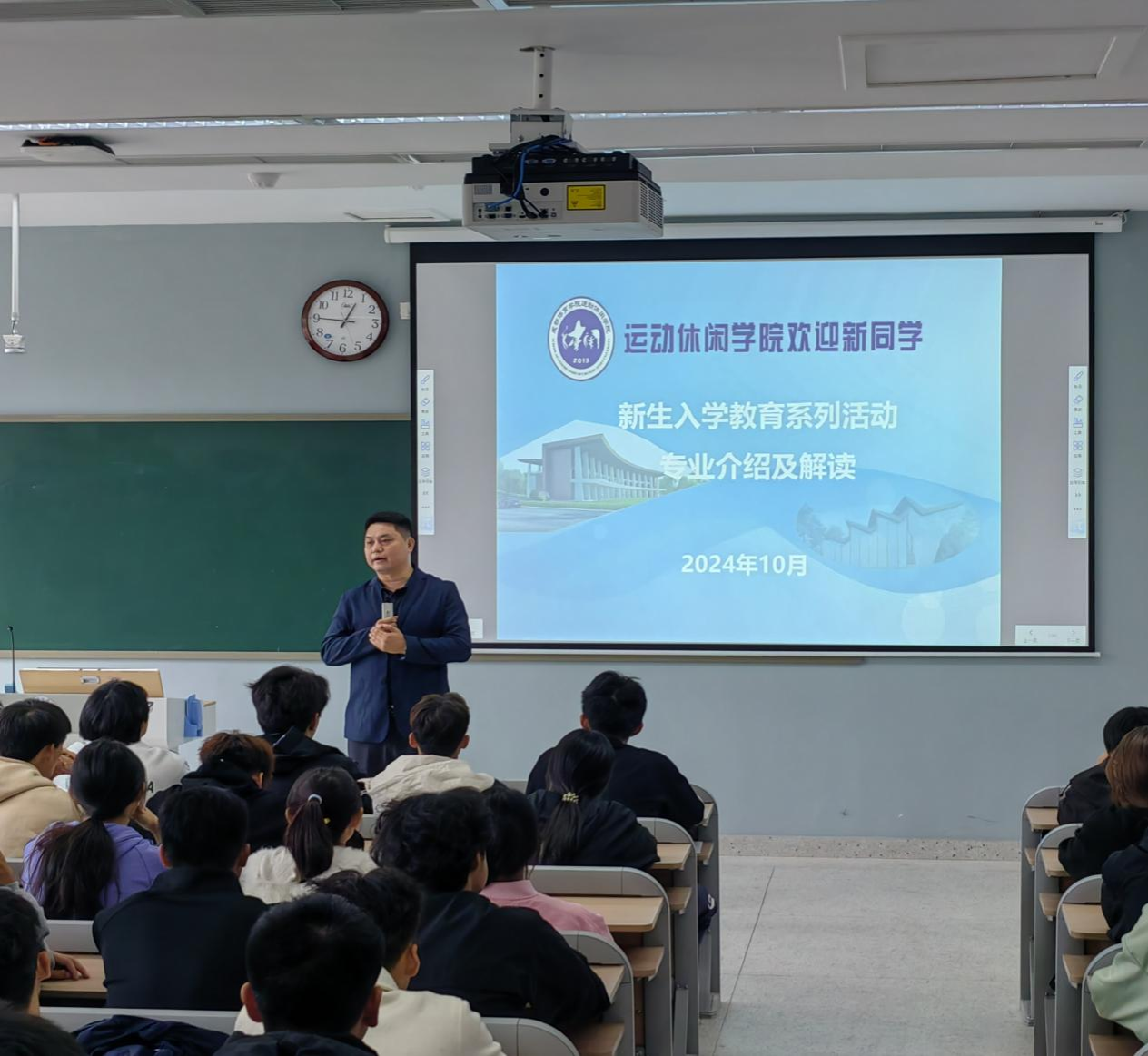 10月10日,beat365英国官方网站举行了2024级休闲体育专业和社会体育管理与指导专业,入学教育系列讲座之专业介绍及解读,beat365英国官方网站副院长蒋书君担任主讲人,学生管理办公室主任耿松主持会议。