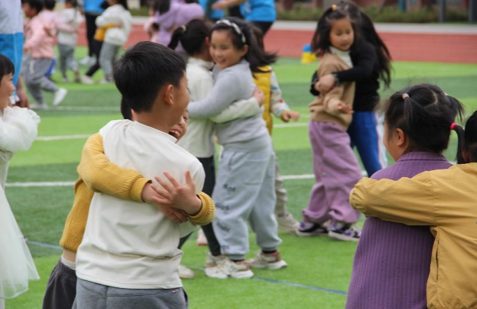 活动中,志愿者们带领小朋友们用拖拉机舞热身,一起配合进行“桃花朵朵开”游戏,在锻炼小朋友们身体协调能力的同时,增强团队意识。虽然七中小学生们此前并未接触过飞盘运动,但在志愿者们有序组织下,小朋友们热情参与飞盘活动,他们在活动中逐渐熟悉这一休闲运动,还通过团队联系增强了了互相帮助、团结协作的意识。希望通过这次活动,增强他们的体魄,培养他们对于体育的热爱,让他们在成长的道路上走得更加坚定和自信。