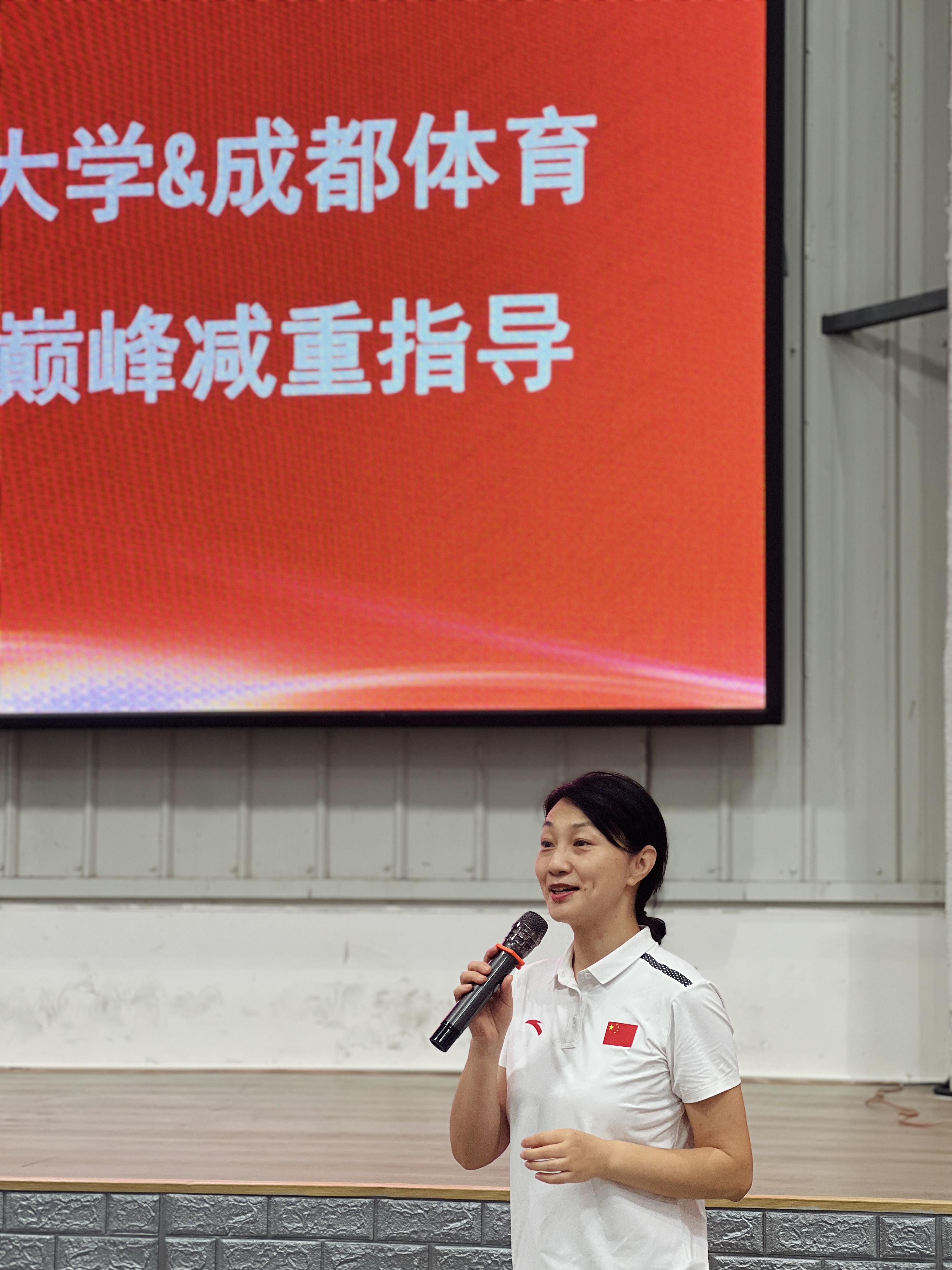 beat365英国官方网站21级大众健身方向学生沉浸式体验了两小时的巅峰减重暑期训练营训练课程,包括有氧团操、器械训练、羽毛球等课程板块和内容,并对巅峰减重课程理念和设计,以及如何做到既有趣味性又保证安全性,达到科学高效的减重效果等,进行了提问和解答,互动踊跃。与此同时,我院领导与专项教师同巅峰减重有限公司创始人冯磊、西南区域总经理张闫蒲及技术总监刘祥雲进行了座谈,强调校企合作、校企共建的核心思想。下午1点,成体师生在基地大厅聆听巅峰减重基地创始人冯磊的精彩分享,从专业素养和工作态度等方面介绍企业用人需求。