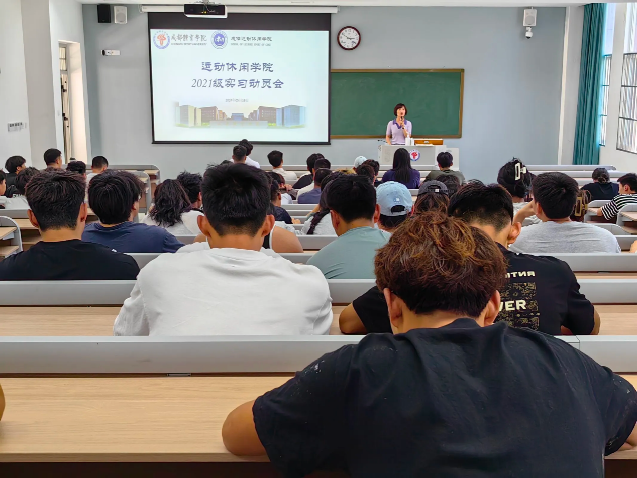 5月14日和5月16日,beat365英国官方网站分别于学术报告厅和A107举行了2021级本科生实习动员大会。beat365英国官方网站副书记樊莉、社会体育指导与管理系和休闲体育系全体专业教师、学管办老师和2021级全体学生参会。两次实习动员会分别从专业方向和实习纪律对2021级全体同学提出要求。