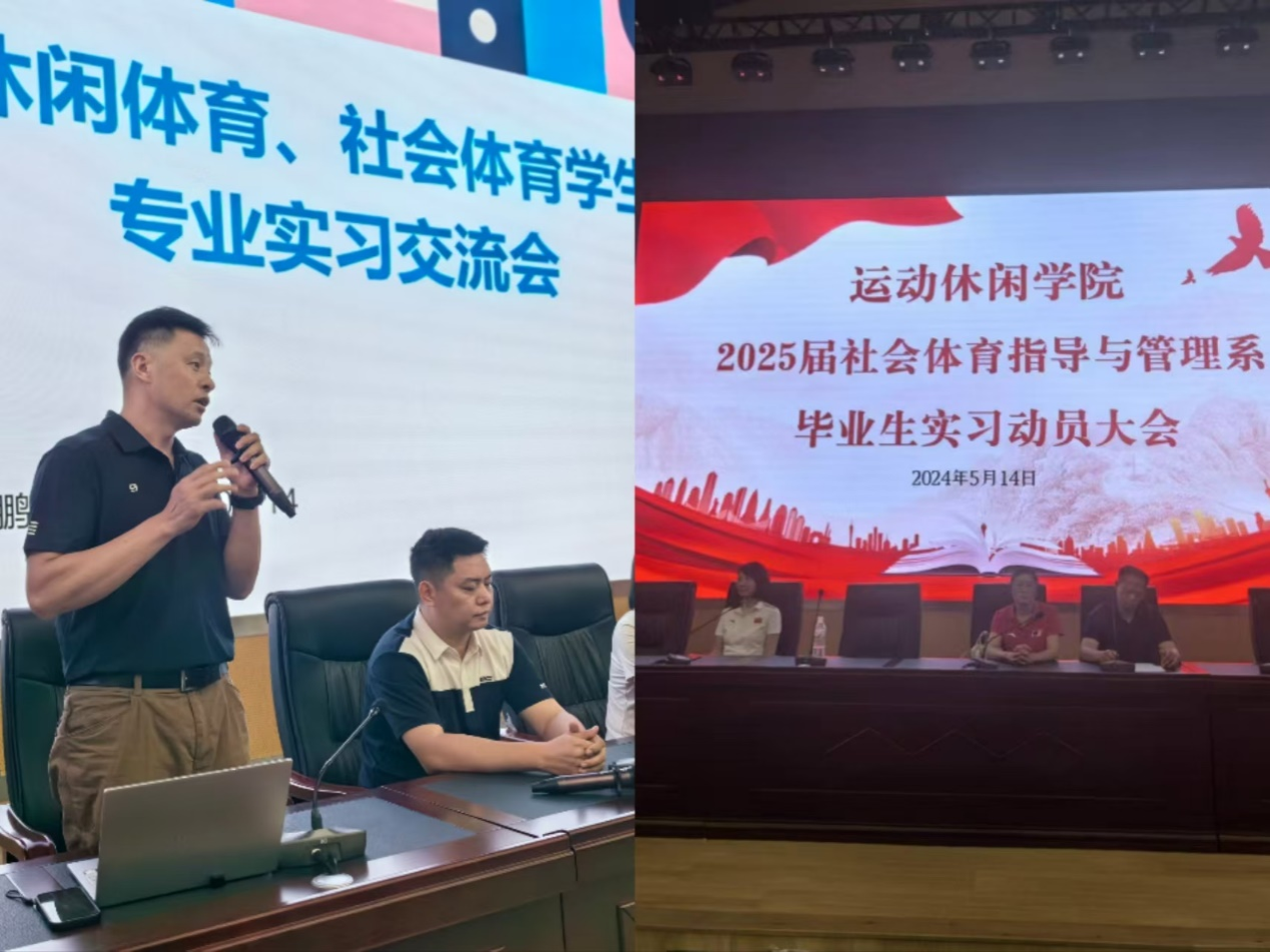 社会体育系主任徐鹏老师和休闲体育系主任蒋书君老师也分别发表了讲话,他们教导同学们在实习过程中应当立足自身条件,不断学习技能和知识,为未来就业奠定坚实的基础。