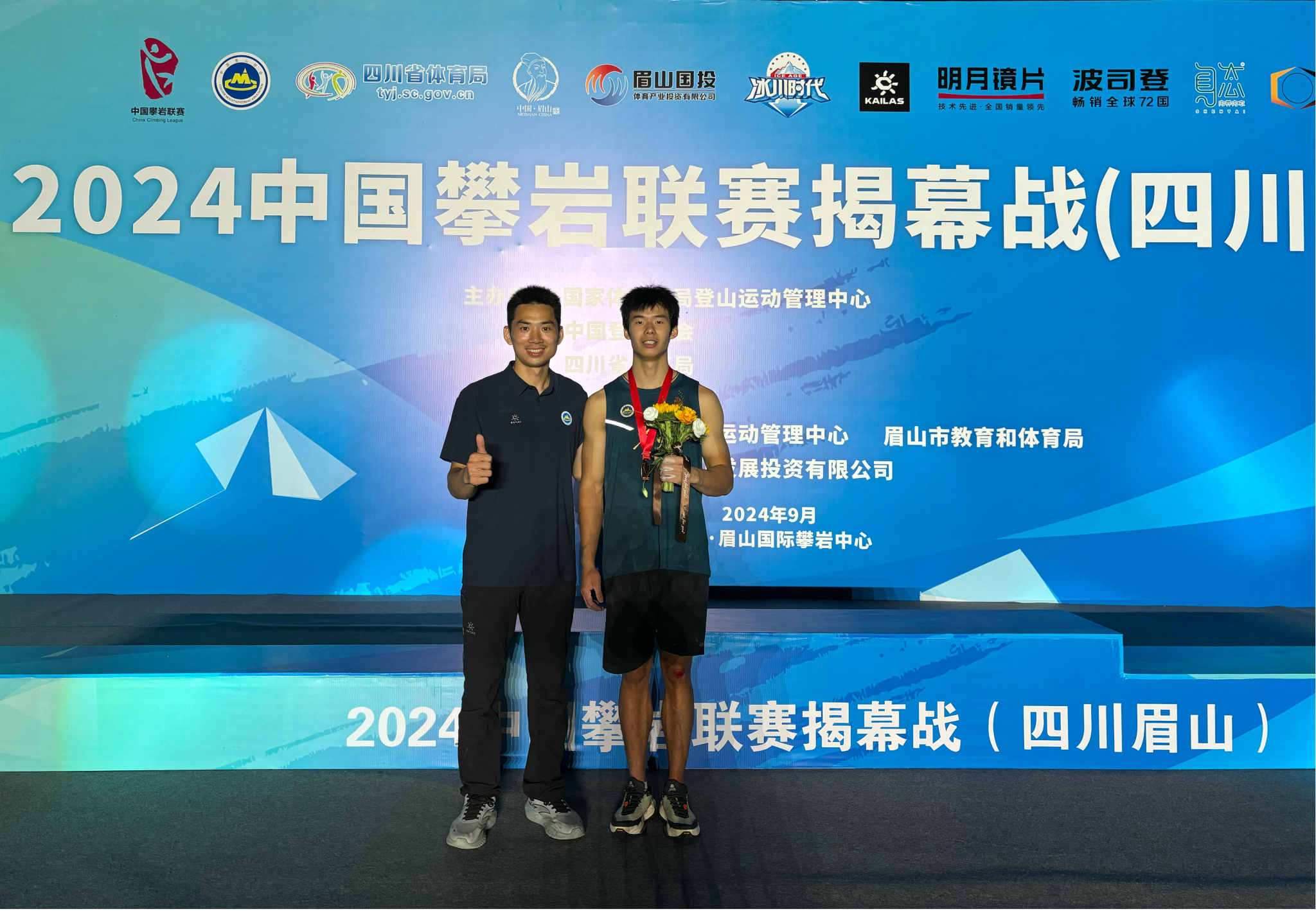 2024年9月14日晚9时,在2024中国攀岩联赛揭幕战男子速度决赛的角逐中,我校2023级攀岩代表队学生龙见国获得季军。