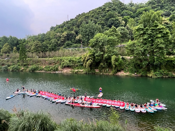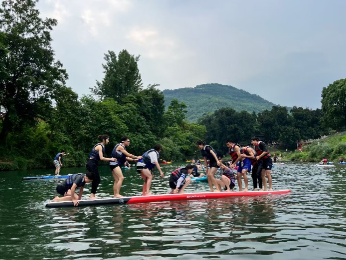 5月18日,在专业老师的带领下,我们再次奔赴山海,去到水里面享受桨板实践课程。桨板(Stand Up Paddling, SUP)作为一种集健身、娱乐及探险于一体的水上活动,吸引了无数寻求刺激体验的人们。桨板者站立的高度使得他们能更好地欣赏到水面之上的风景,并且对身体平衡能力的要求更高。同学们每一次的落水都是一次成长,正如那些站在桨板上不断调整姿态以保持平衡的勇者们所展现出来的精神一样,这些困难只是暂时的阻碍,阻挡不住我们的向往和探求的脚步。