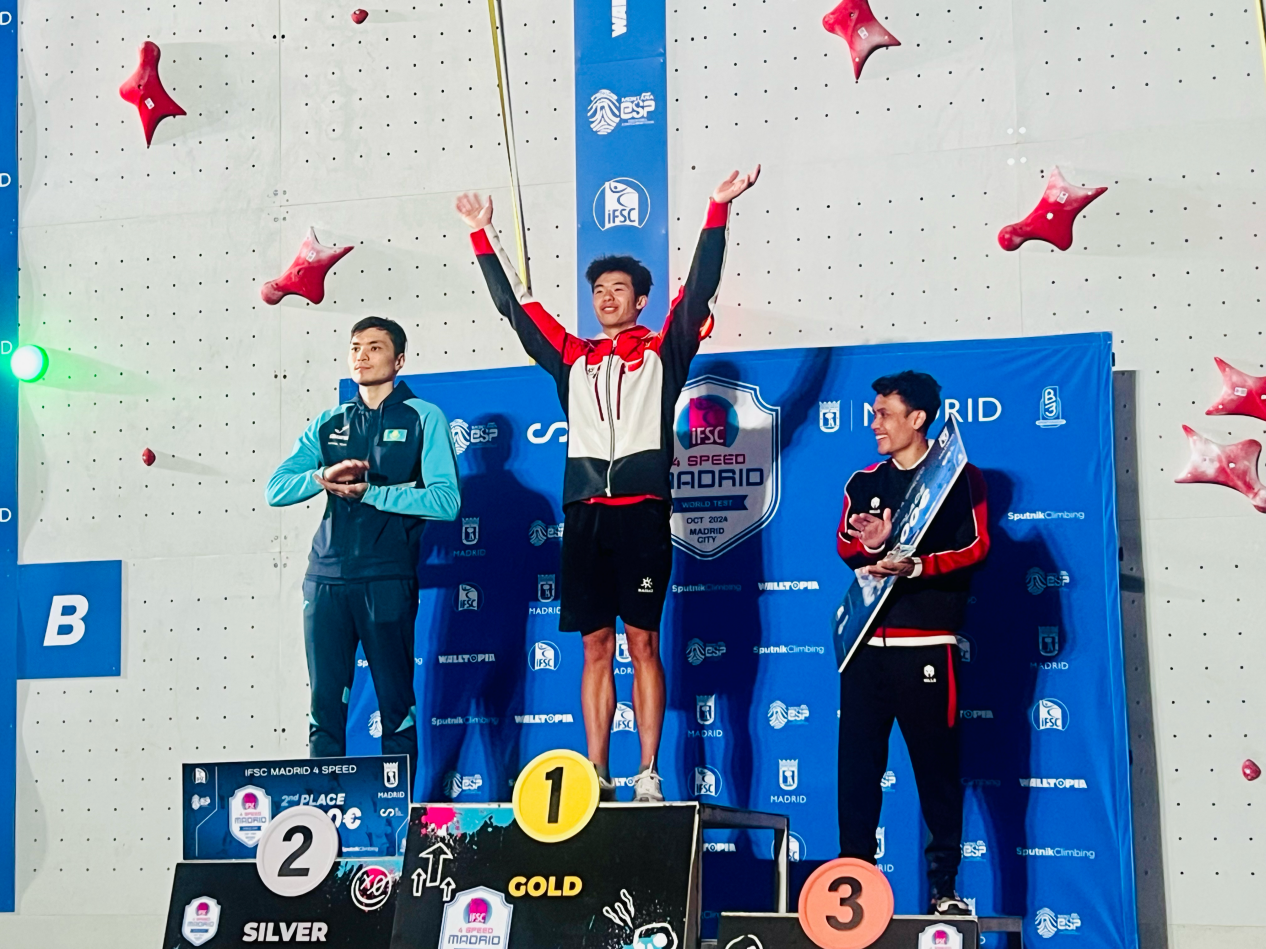 2024年10月19日至20日,由国际攀岩联合会(IFSC)主办的2024国际攀联速度邀请赛,在西班牙首都马德里落下帷幕。我校学生龙见国代表中国国家攀岩队出征此次邀请赛,面对众多国际强手,展现出了非凡的竞技状态和坚韧不拔的精神风貌,最终在速度赛3个小项(四赛道速度赛、两赛道速度赛、速度接力赛)比赛中获得1金1银1铜的优异成绩,为中国攀岩队赢得了荣誉。其中,在男子四道赛速度赛中龙见国获得冠军、两赛道速度赛中获得季军,以及在速度接力赛中获得亚军。