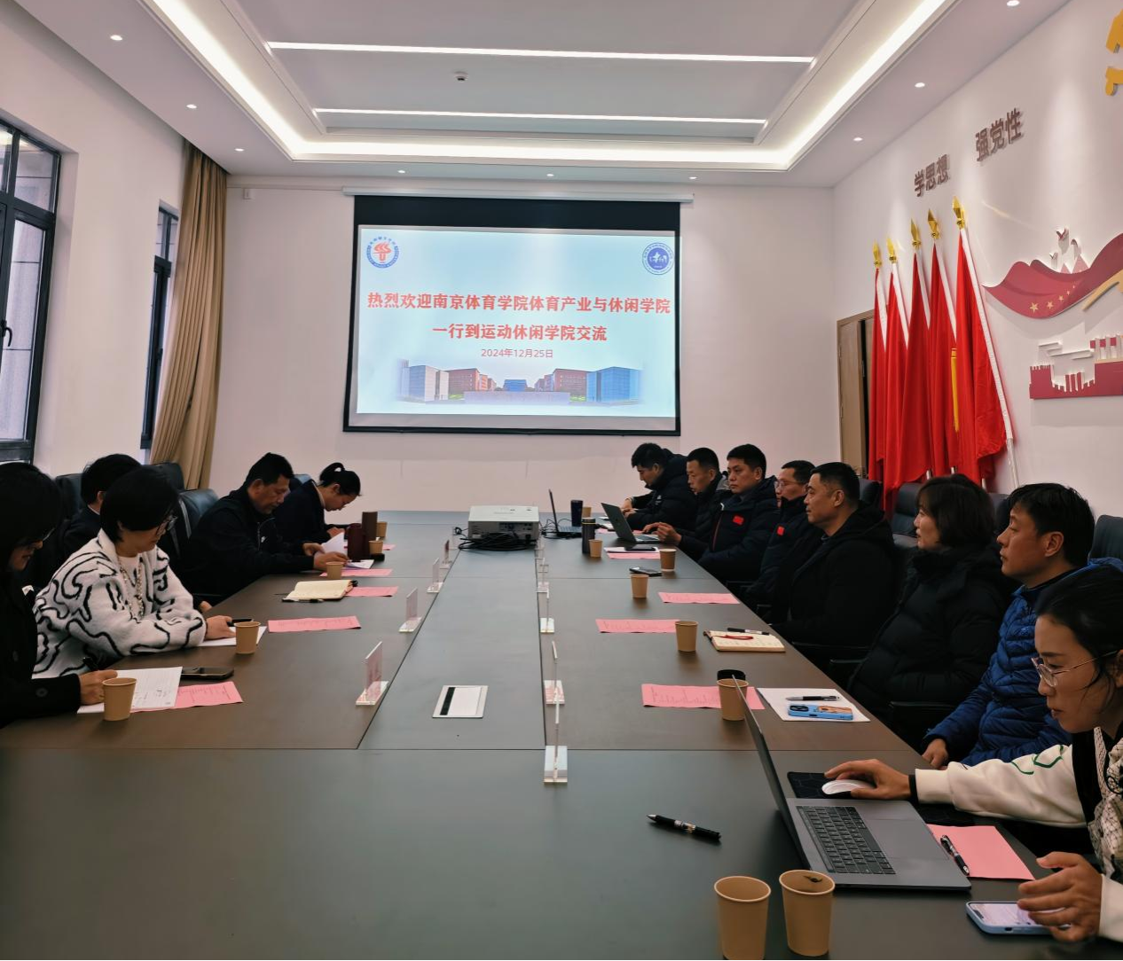 2024年12月25日下午,南京体育学院体育产业与休闲学院院长郭修金一行到beat365英国官方网站交流,天府国际体育赛事研究院院长柳伟、学院领导班子、社会体育指导与管理系、综合实验室、学管办、学院办公室相关负责人出席了此次交流会。会议由党委书记李天林主持。此次交流旨在借鉴兄弟院校的成功经验,共同提升社会体育与休闲体育领域的人才培养质量。
