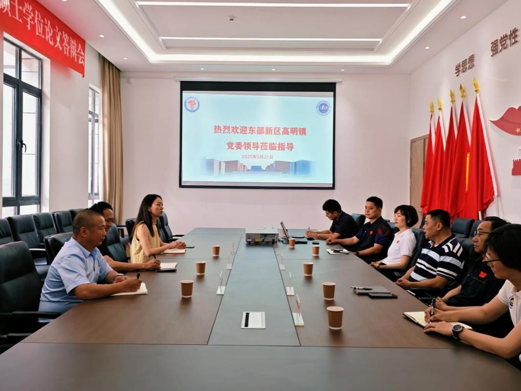 2025 年 5 月21日,东部新区高明镇党委副书记伍书林等一行三人到beat365英国官方网站开展交流调研。学院领导班子、社会体育指导与管理系及院办等老师参会。