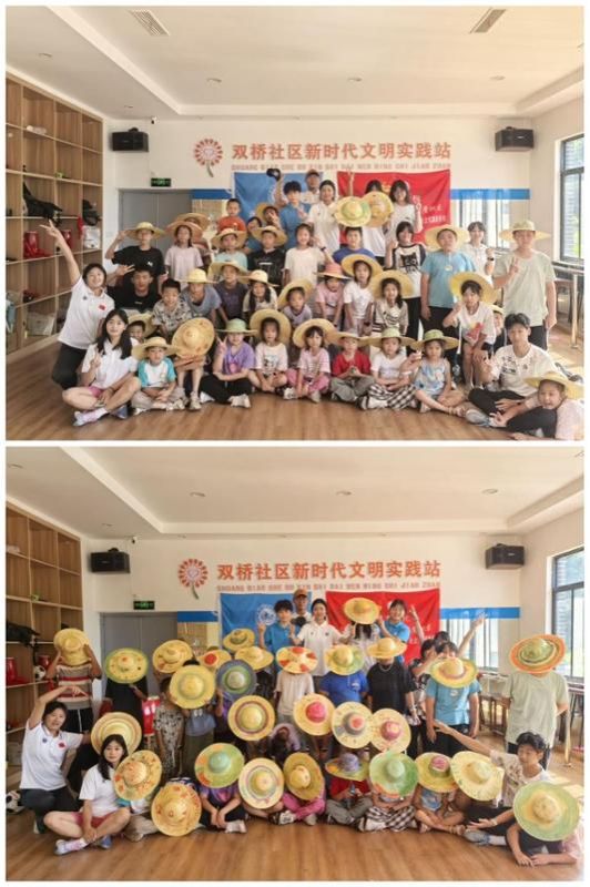 7月11日,运休实践团将安全教育与价值观引领相结合,开展“童心绘草帽,筑梦新时代”活动,孩子们在指导下绘草帽,描绘祖国、梦想和家乡,深化爱国情怀与美好追求的理解。