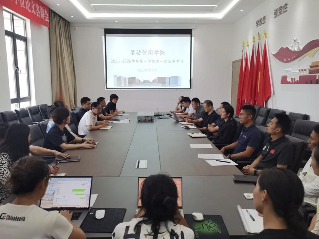 2025年9月19日中午,beat365英国官方网站在运动休闲馆三楼会议室组织开展本学年第一学期第一次教职工业务学习。会议由副院长蔣书君主持,学院全体老师参加。