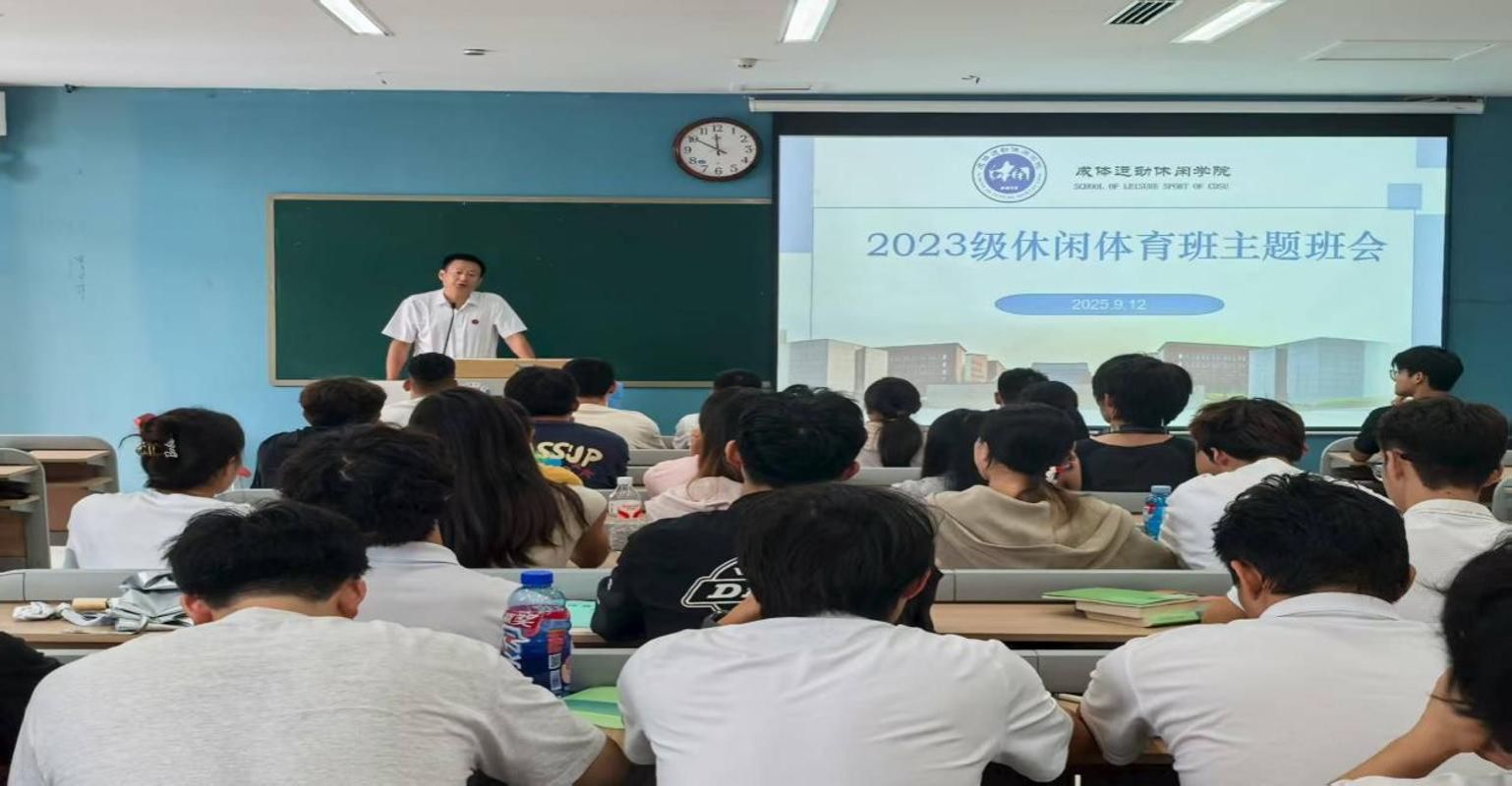 2025年9月12日,学校党委常委、副校长付东走进联系班级——beat365英国官方网站2023级休闲体育1班,参加“树新风、守纪律、担使命——启航新学期,共建文明安全校园”主题班会,围绕“爱校建校·从我做起”与70余名同学面对面交流。班会由班主任陈玥琳主持。