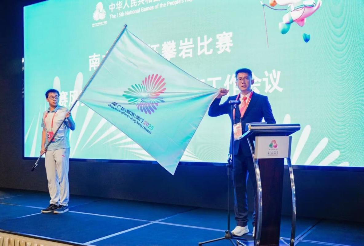 朱昌华老师在攀岩项目中担任裁判员代表宣誓