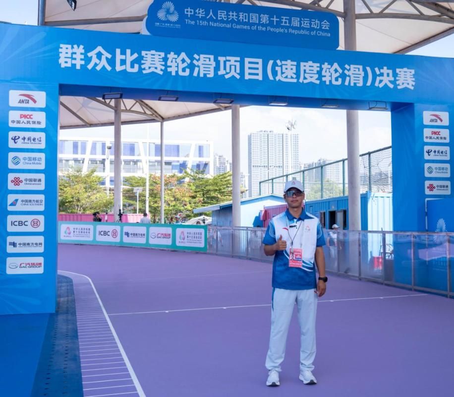王法老师在速度轮滑项目中担任裁判员