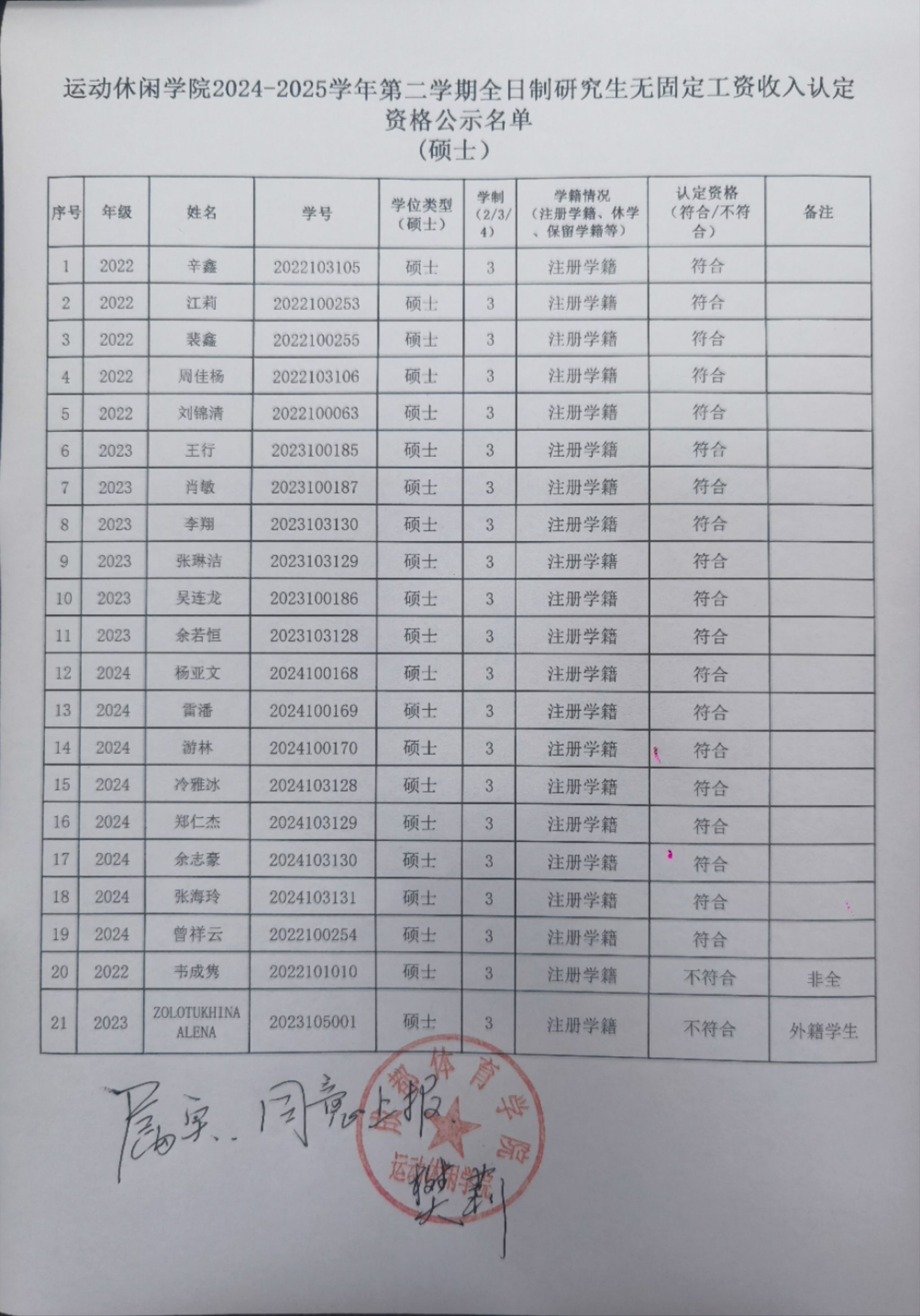 beat365英国官方网站2024-2025学年第二学期全日制研究生无固定工资收入认定资格公示名单