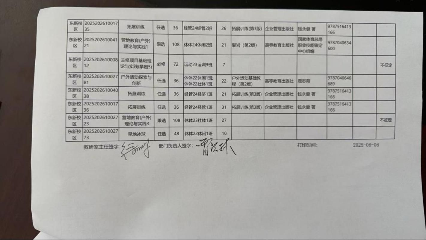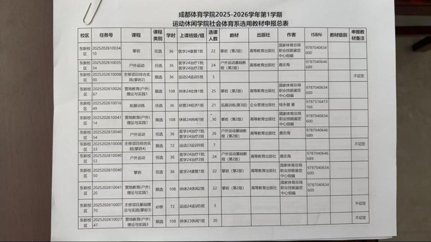 为做好2025—2026学年第1学期教材征订工作,确保教材按时、准确发放,beat365英国官方网站教研室严格按照征订要求,召集教研室任课教师通读备选教材、教辅、自编教材、讲义、教学资源,集体讨论并填报征订教材信息后,学院召开党政联席会完成审核,现将2025-2026学年第1学期教材征订结果公示如下,公示时间2025年6月11日至2025年6月13日,如有异议请在公示期间联系beat365英国官方网站办公室,联系电话81365289。